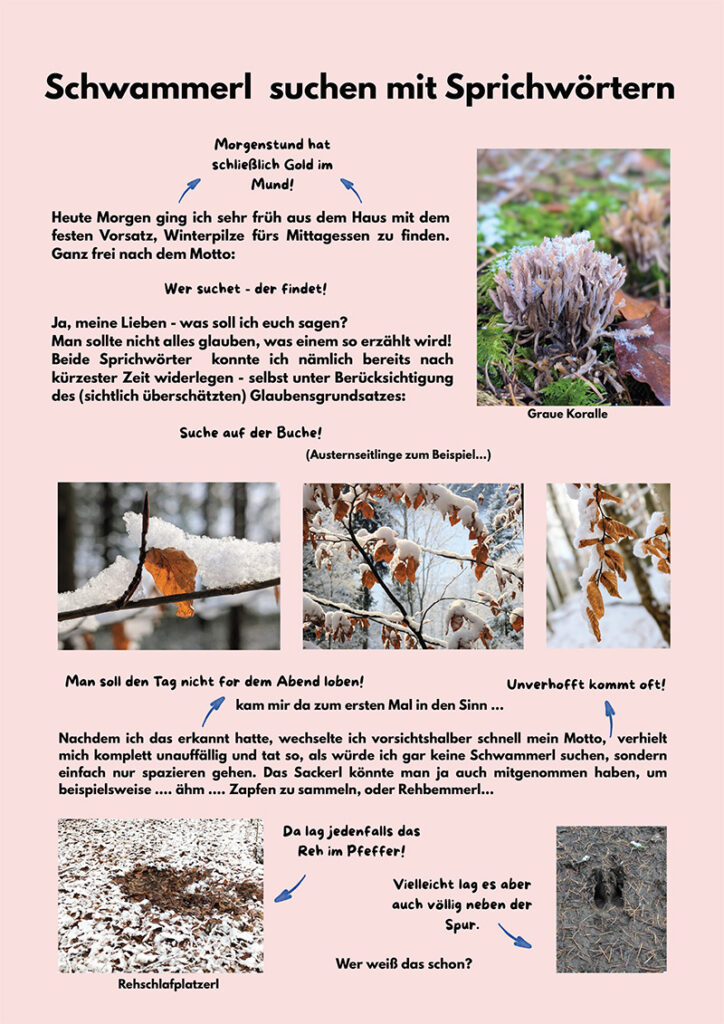 Lisi Quinonez, aktive Bloggerin und Autorin der sensationellen Momobücher für Kinder und Ältere hat bei ihren Streifzügen in die Garstner Umgebung ein besonderes Auge auf den frühen Wintereinbruch geworfen. Mit scharfem Blick fürs Anmutige und Aussergewöhnliche sowie ihren knappen, treffenden Texten hat sie für uns eine kleine Adventüberraschung parat!